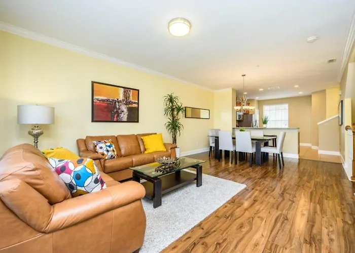 Das 4-Zimmer-New Modern Townhome, Near The Parks - 4030 liegt im Viertel International Drive von Orlando und empfängt seine Gäste mit einem Jacuzzi. Icebar Orlando liegt rund 25 Gehminuten von diesem 167 m² großen Apartment entfernt, während die Bushaltestelle Universal Epic Universe in ungefähr 15 Minuten zu Fuß zu erreichen ist.